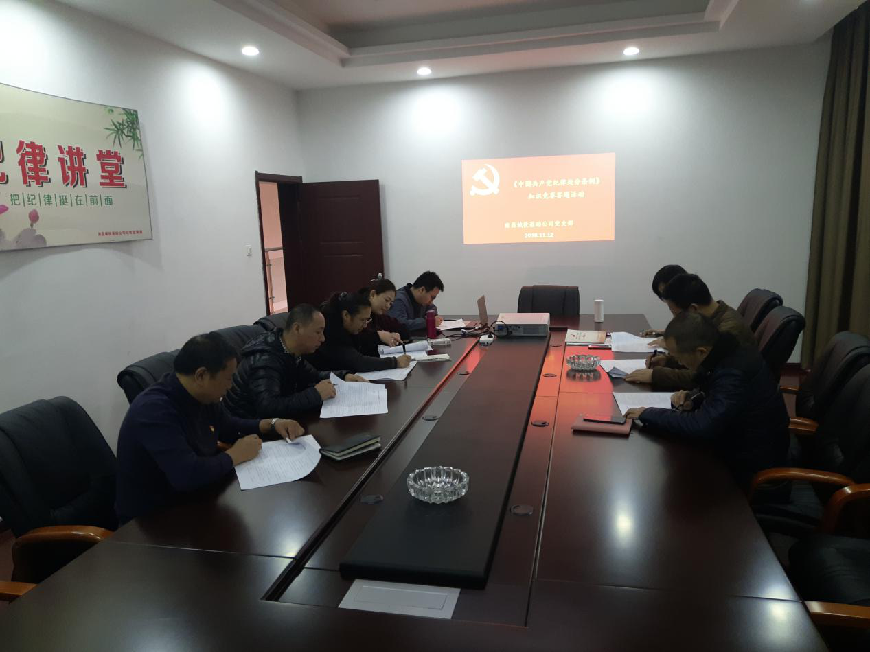 為切實(shí)做好新修訂的《中國(guó)共產(chǎn)黨紀(jì)律處分條例》的學(xué)習(xí)貫徹,深入推進(jìn)公司黨風(fēng)廉政建設(shè)和反腐工作,使嚴(yán)格遵守黨紀(jì)國(guó)法的理念深入人心,進(jìn)一步增強(qiáng)拒腐防變和抵御風(fēng)險(xiǎn)的能力,2018年11月12日上午,基礎(chǔ)公司紀(jì)檢監(jiān)察室會(huì)同黨支部在紀(jì)律講堂舉行了《中國(guó)共產(chǎn)黨紀(jì)律處分條例》知識(shí)競(jìng)賽答題活動(dòng)。