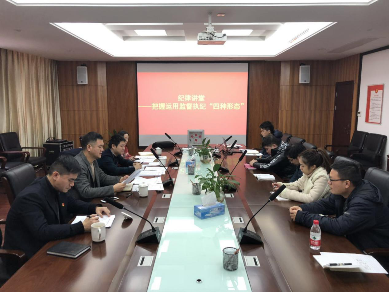 黨支部書記張曉慶從監督執紀“四種形態”提出的背景、正確理解“四種形態”、積極實踐“四種形態”等方面進行了全面闡述,同時指出,將把握監督執紀“四種形態”作為新年“第一課”,以收收心、醒醒腦、敲敲鐘、靜靜心為目的,使黨員干部接受一次生動的黨風廉政教育的洗禮,思想上得到教育,靈魂上受到觸動。