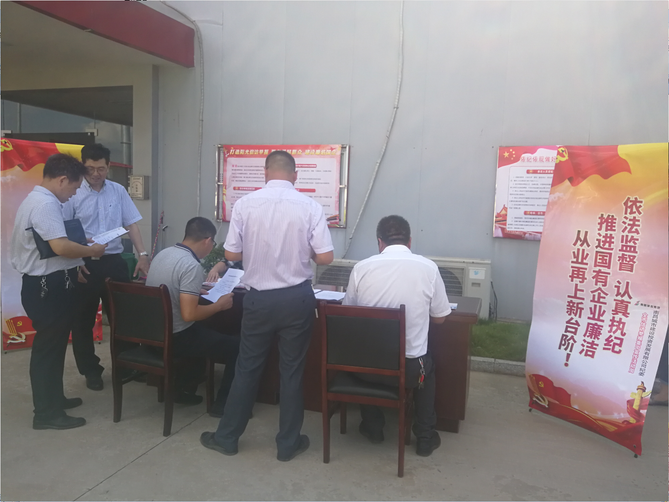 為認真貫徹落實全市紀檢監察信訪舉報集中宣傳周活動精神,6月25日,南昌城投集團黨委委員、紀委書記何志敏帶領集團公司紀檢干部深入水岸觀邸小區、洪都大道快速路改造等下屬子公司管理的物業小區及工程現場一線,面對面接待來訪群眾,耐心解答信訪舉報的相關問題,并通過宣傳展板和宣傳手冊向群眾宣講信訪舉報知識。