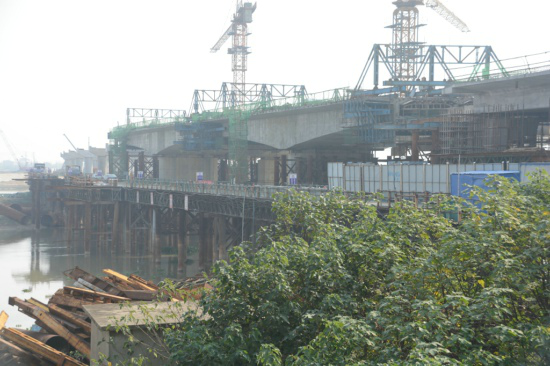 南環高架橋撫河段懸灌梁的順利合攏,標志著項目上部梁體施工取得階段性勝利,現場施工正如火如荼展開。